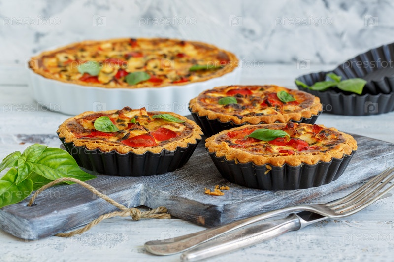 Мини-кише с курицей, луком и сладким перцем