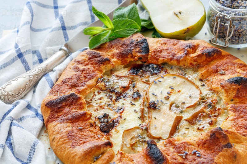 Домашний грушевой пирог с голубым сыром и лавандой