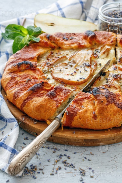 Вырежьте свободный торт (Galette) с грушей и лавандой