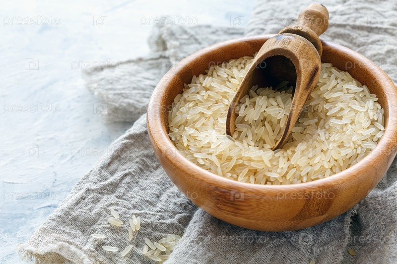 Длинный рис на пару в деревянной миске