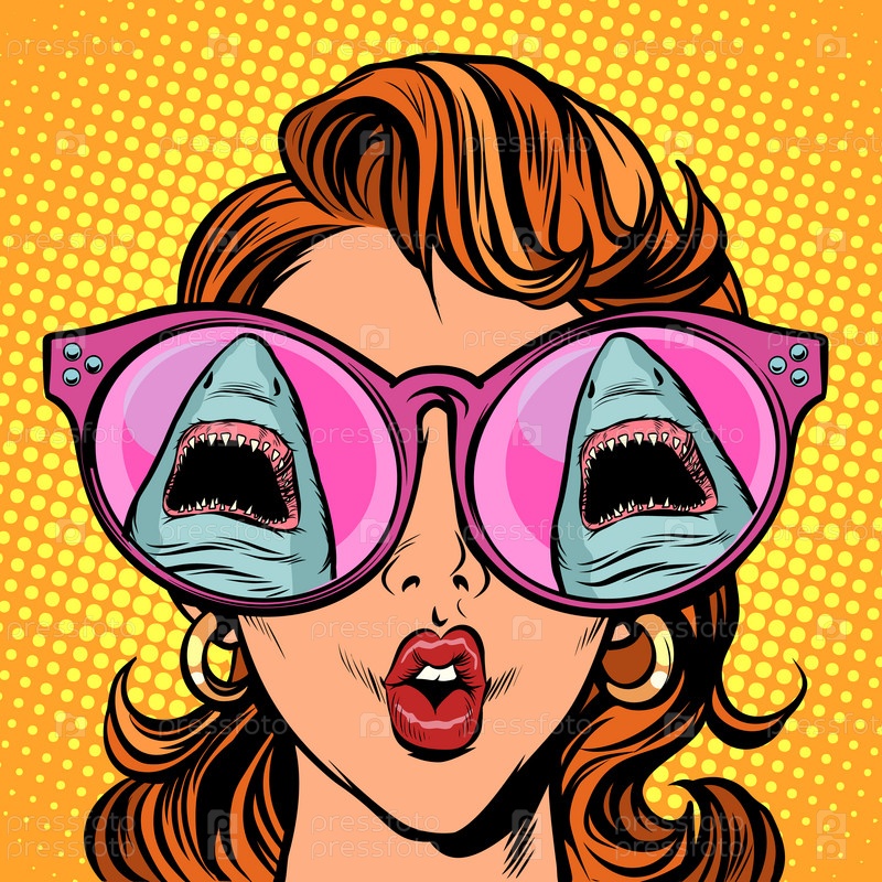 Женщина с удивлением смотрит на акулу