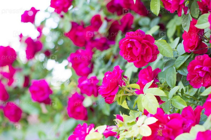Красные розы, кустарник из красных роз