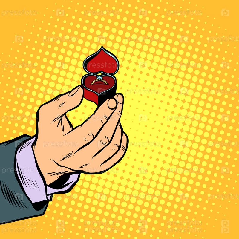 Рука с кольцевой коробкой, помолвка Мужчина