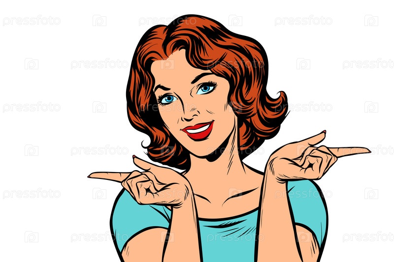 Женщина, указывающая пальцами слева и направо