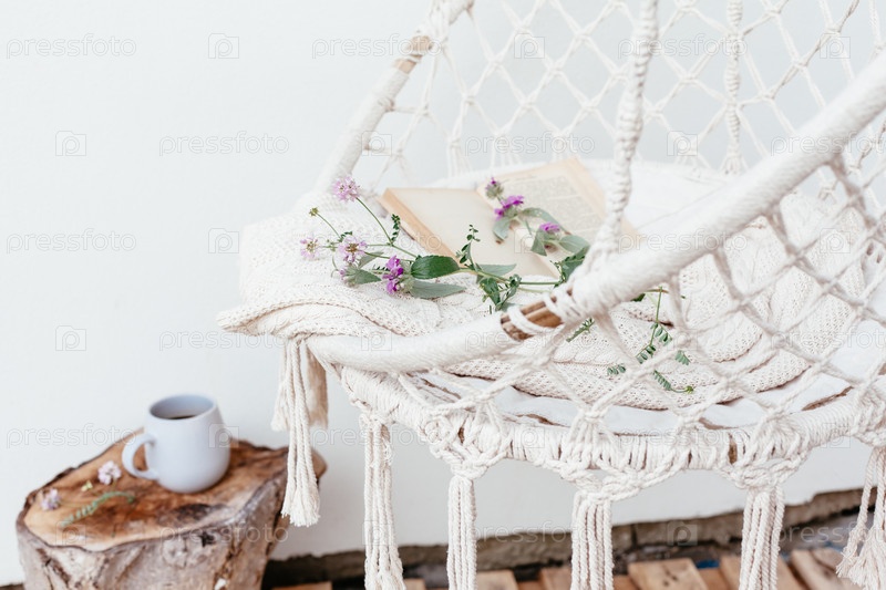 Летний концепт hygge с гамаковым креслом в саду