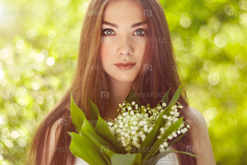 Портрет красивой молодой женщины с лилией долины