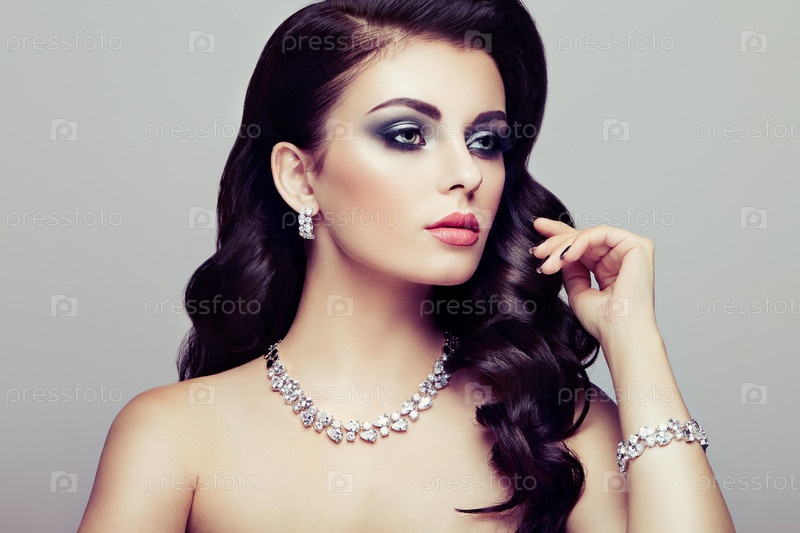 Брюнетка женщина с длинными блестящими волнистыми волосами