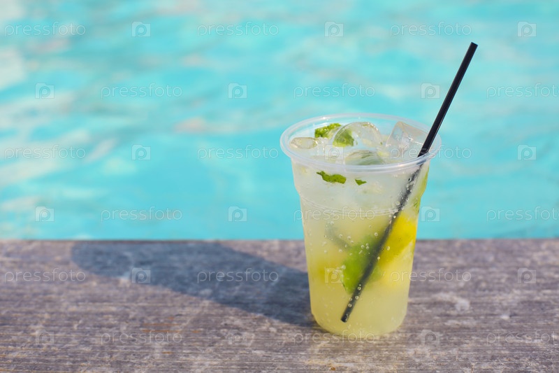 Коктейльный стакан на фоне бирюзовой воды