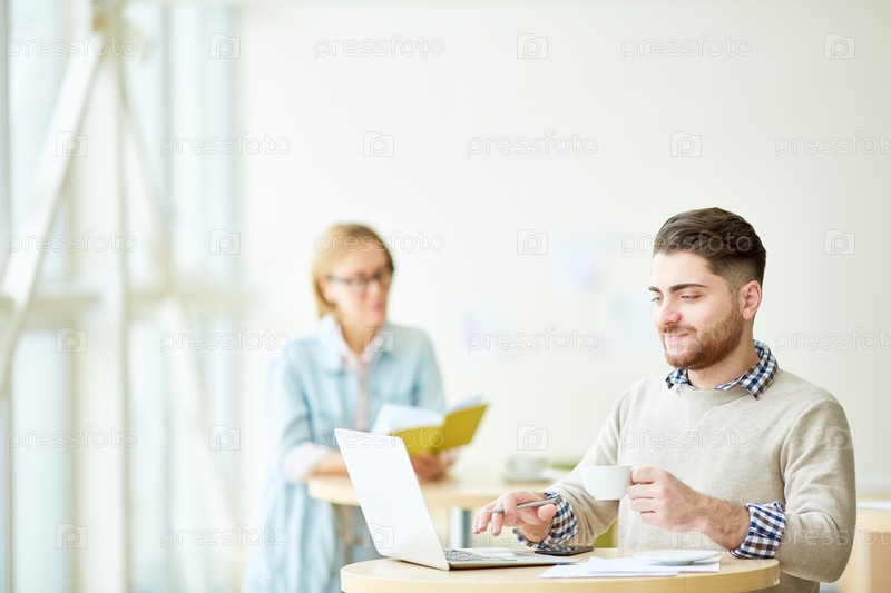 Человек с кофе в кафетерии