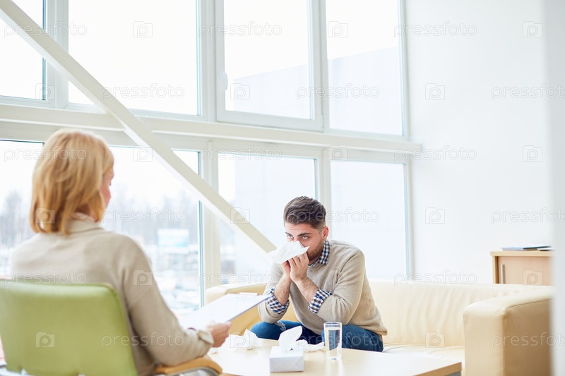 Плачущий человек посещает терапевта