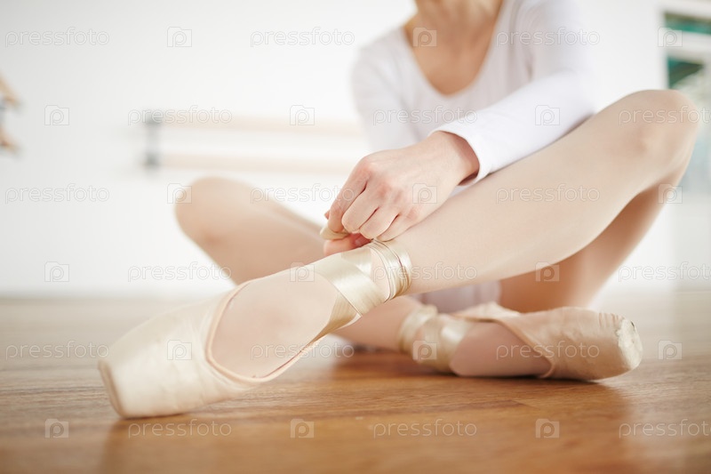 Женщина в пуантах цвета шампанского