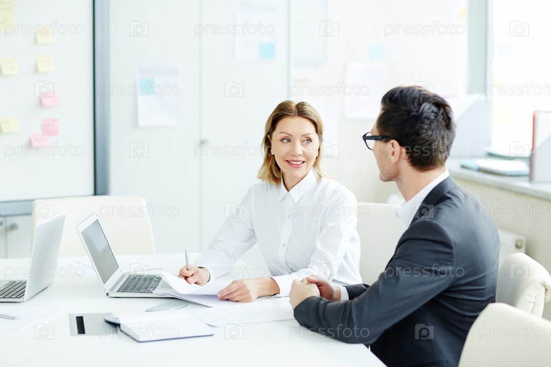 Женщина и мужчина на встрече в офисе