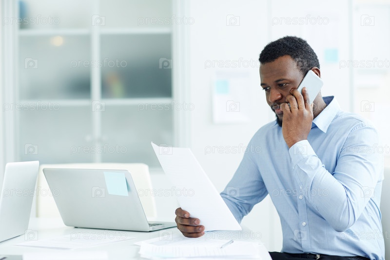 Человек разговаривает по телефону в офисе