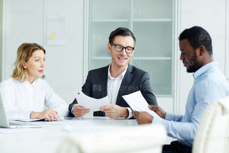 Коллеги, имеющие деловую встречу в офисе