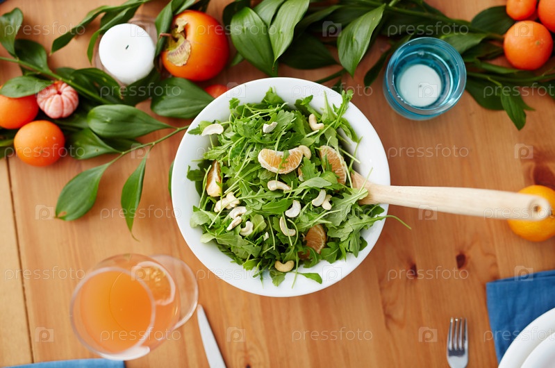Зеленый салат с мандаринами и орехами