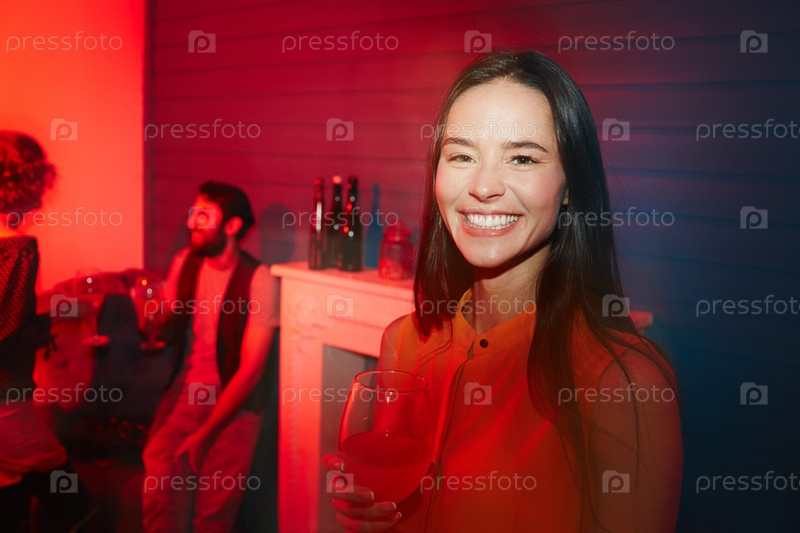 Девушка на вечеринке в красном свете