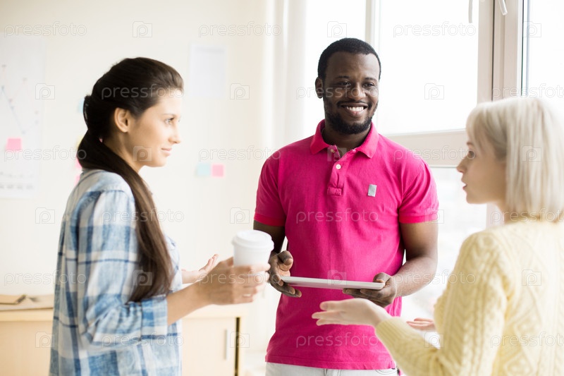 Многорасовая группа людей, общающихся на кофе-брейке