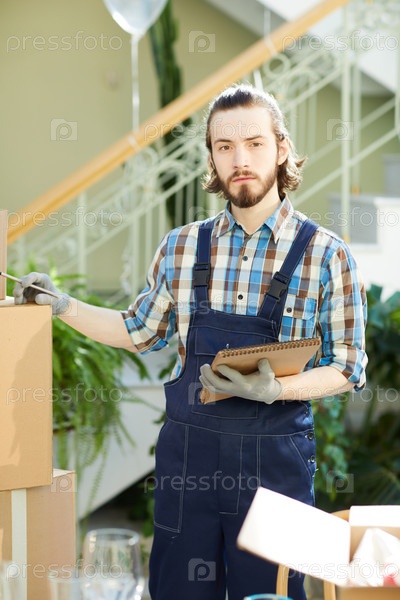 Молодой грузчик отвечает за доставку