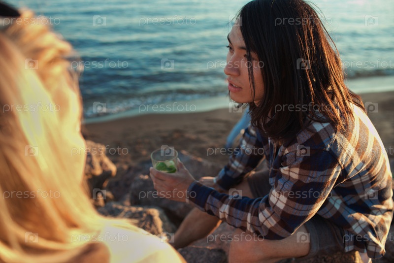 Молодой человек с напитком на пляже