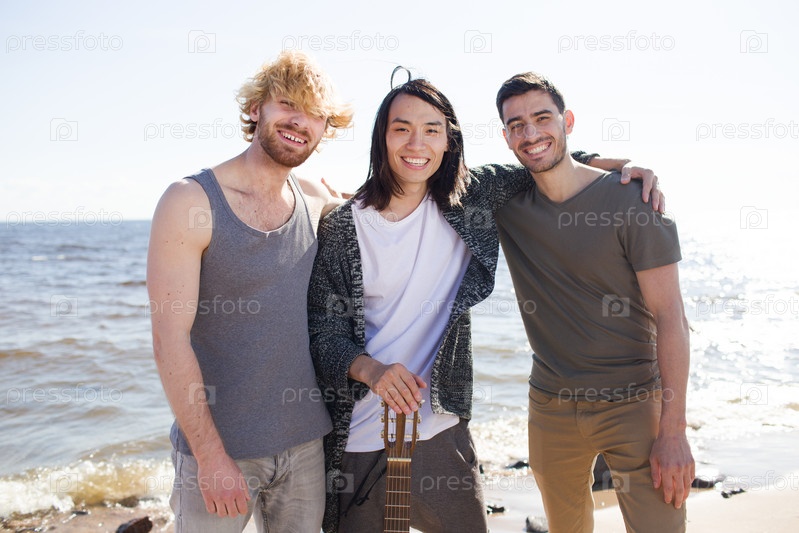 Молодые друзья с гитарой