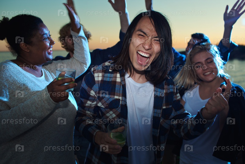 Азиатский человек среди танцующих друзей