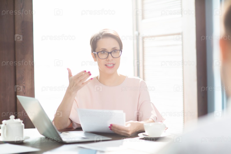 Женщина объясняет информацию коллеге