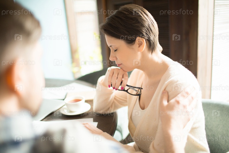 Усталый бизнесмен сидит рядом с коллегой