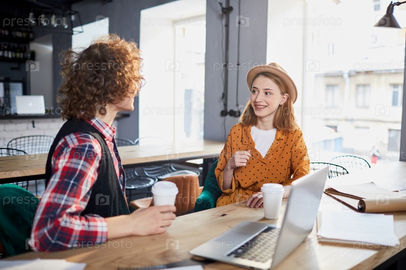 Молодые коллеги в кафе