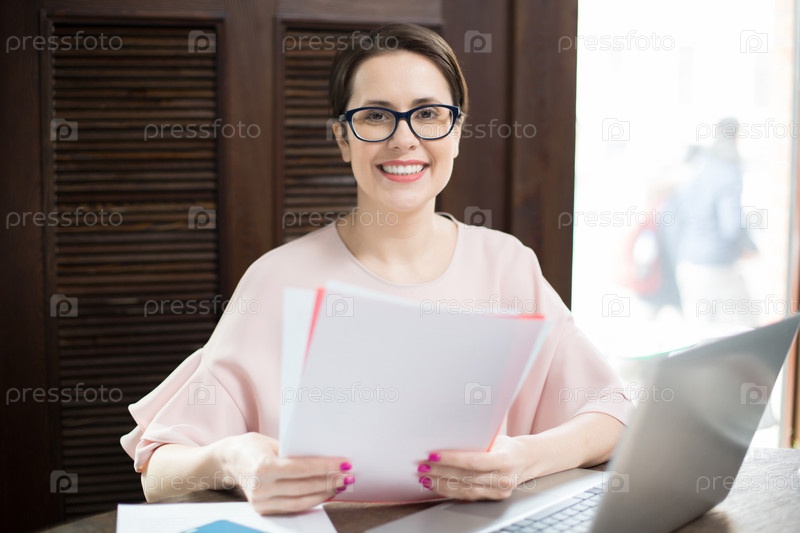 Веселый бизнесмен с бумагами