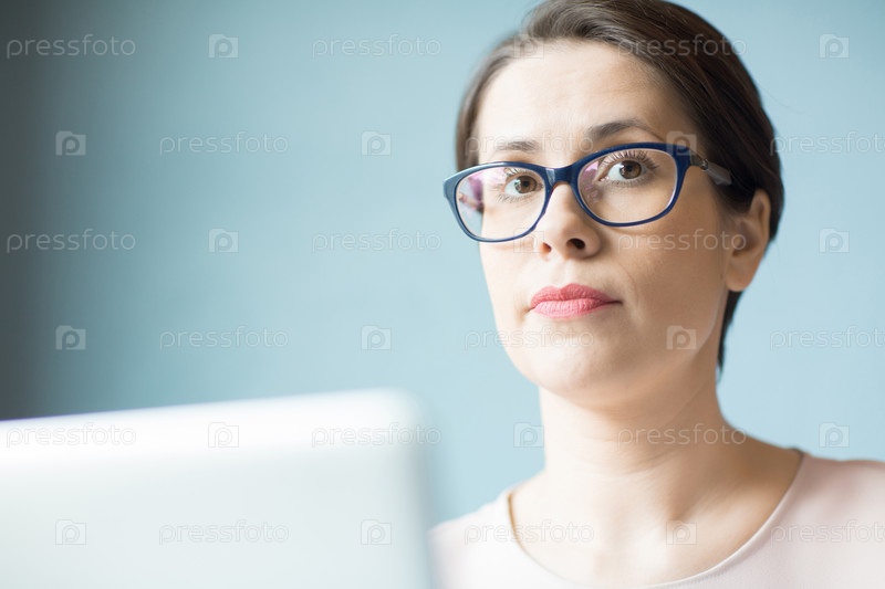 Серьезная женщина с ноутбуком