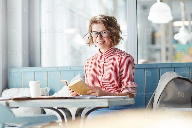 Чтение книги в кафе