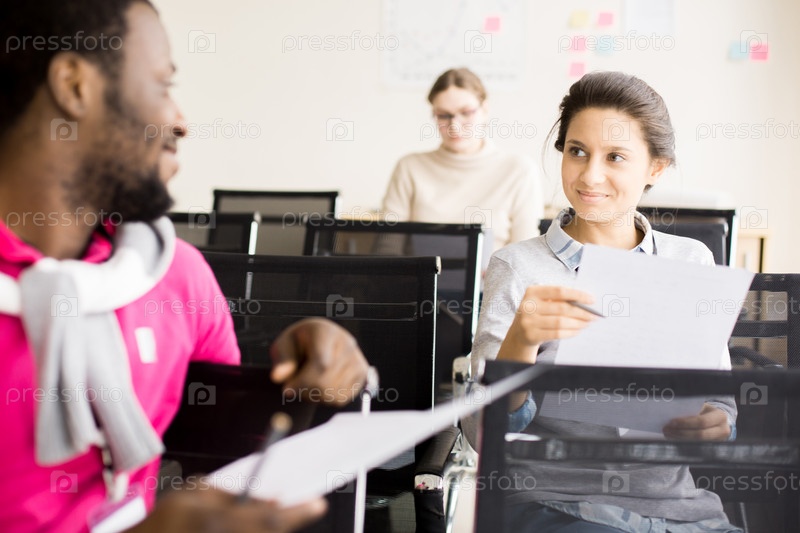 Молодая женщина и черный человек на семинаре