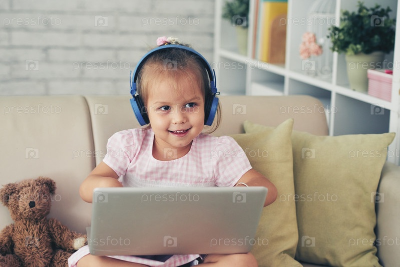 Маленькая девочка с ноутбуком