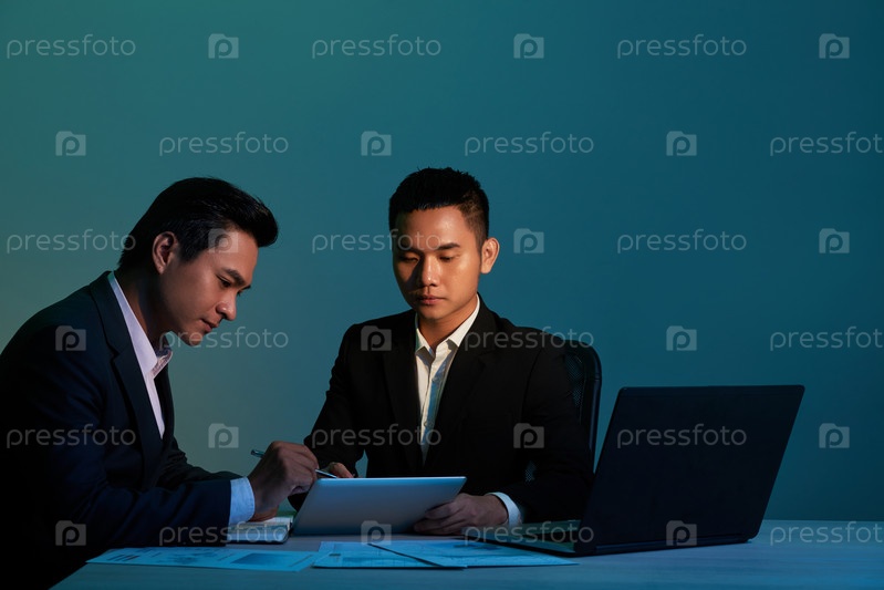 Коллеги обсуждают бизнес-данные