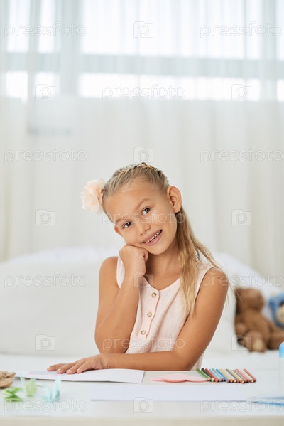 Девочка-подросток в ее комнате