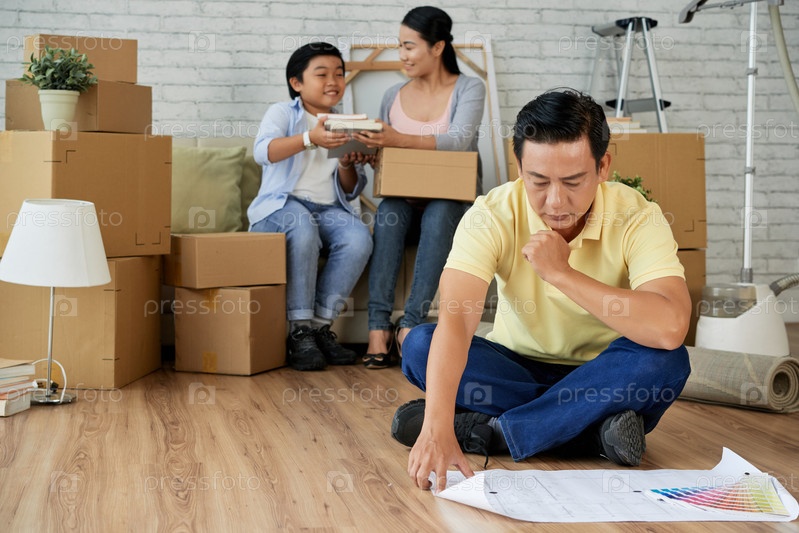 Азиатская семья переехала в новую квартиру