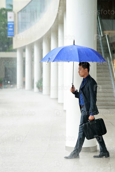 Азиатский менеджер в проливной дождь