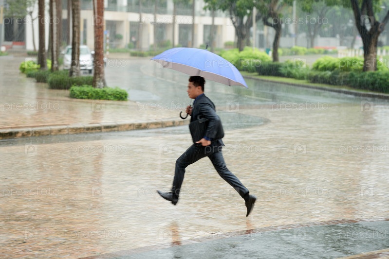 Торопясь дома в проливной дождь