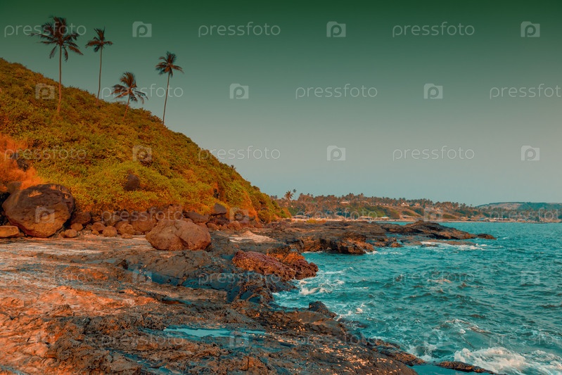 Скалистые берега и кокосовые пальмы
