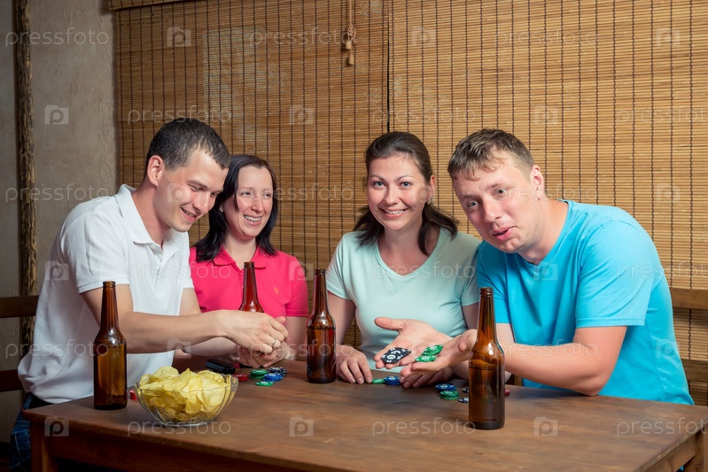 Компания друзей с пивом в картами