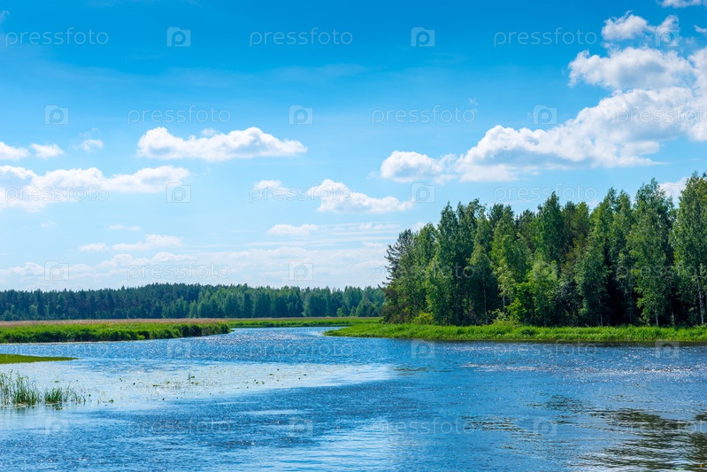 Красивый пейзаж в солнечный день - река в сельской местности