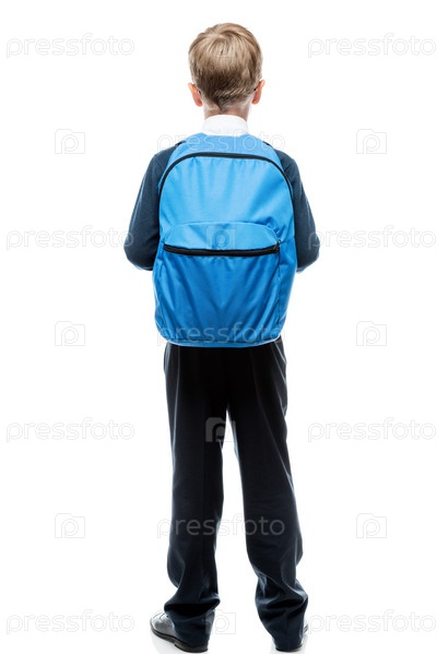 Школьник с рюкзаком на белом фоне