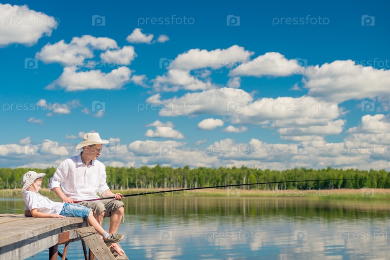 Расслабленный мальчик с отцом на рыбалке