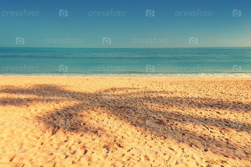 Тень кокосовой пальмы на песчаном пляже