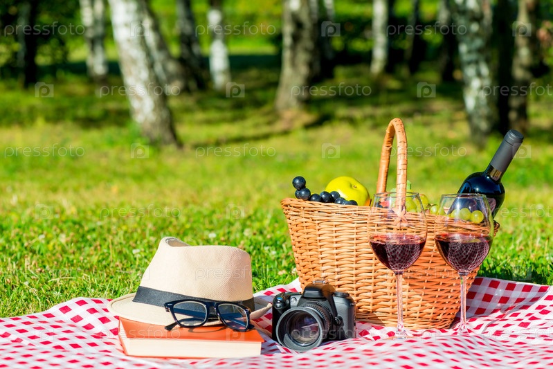 Пикник на лужайке в солнечный день