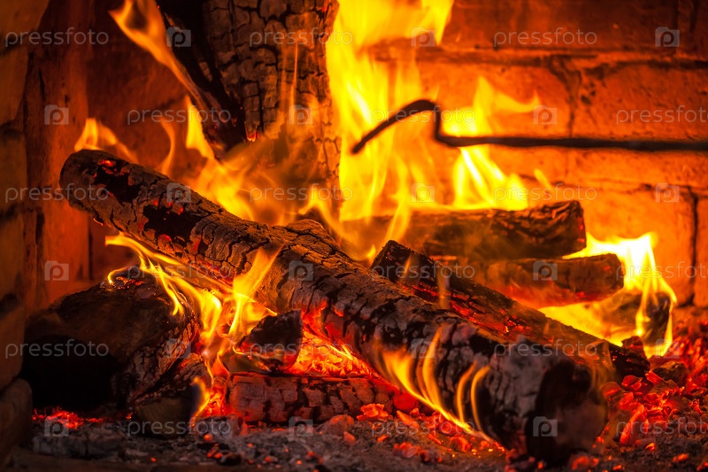 Огонь горит в камине