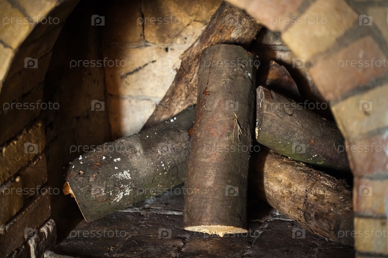 Каменный камин с дровами без огня