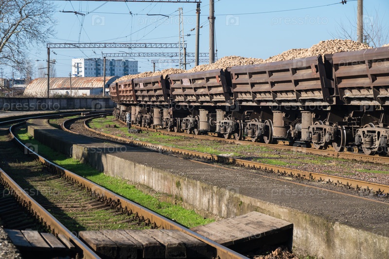 Грузовые вагоны на железнодорожной станции
