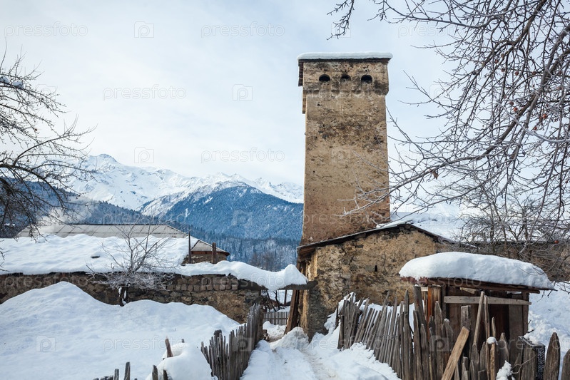 Средневековые башни в Латал в горах Кавказа, Верхняя Сванетия, Грузия