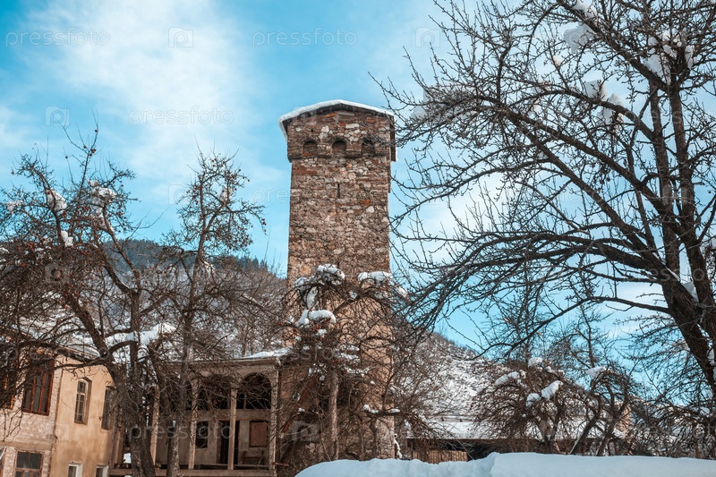 Средневековые башни в Латал в горах Кавказа, Верхняя Сванетия, Грузия